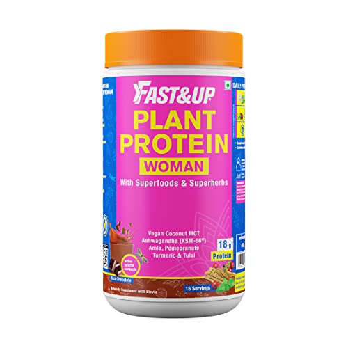 Fast&Up Plant Protein Women with Superherbs & Superfoods (Pomegranate, Tulsi ,Amla , Ashwagandha) for Weight Management, Hormonal Balance etc(Pack of 15 Servings, Chocolate Flavor)