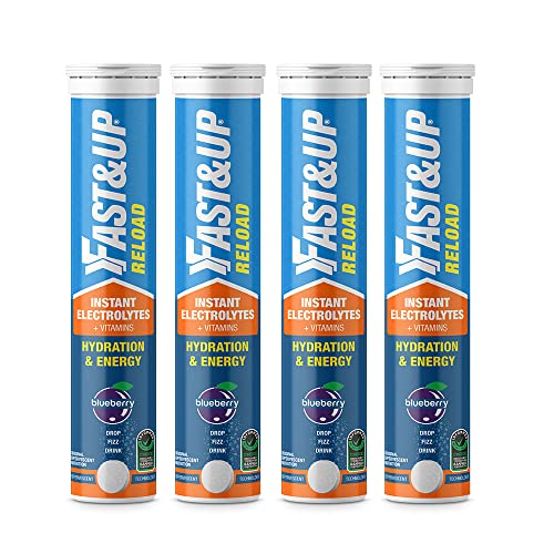 Fast&Up Reload Instant Energy and Hydration Sports Drink - 4 tubes with 20 tablets each - Blueberry Flavour