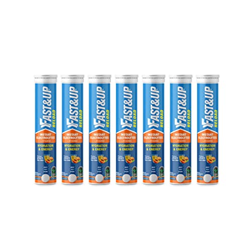 Fast&Up Reload Instant Hydration and Energy Drink - 140 Effervescent Tablets with all 5 Essential Electrolytes + Low Sugar and Added Vitamins - Certified Electrolytes Drink - Peach Ice Tea flavour