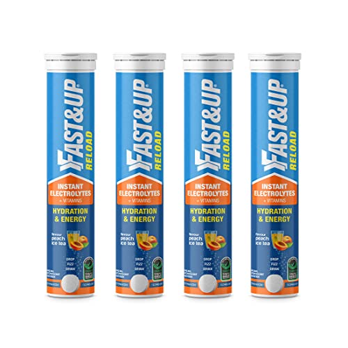Fast&Up Reload Instant Hydration and Energy Drink - 80 Effervescent Tablets with all 5 Essential Electrolytes + Low Sugar and Added Vitamins - Certified Electrolytes Drink - Peach Ice Tea flavour